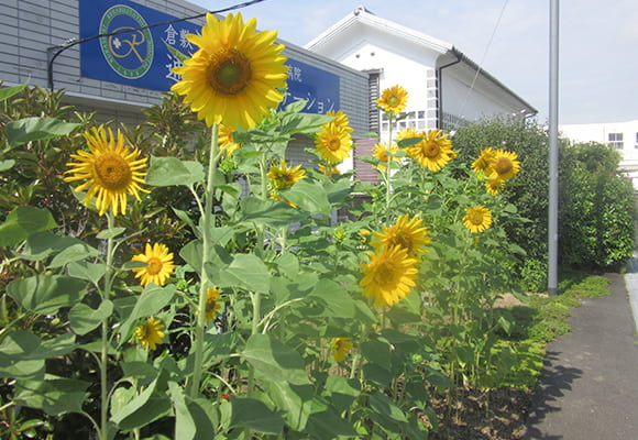 そのためには屋内だけの練習ではなく、しっかり屋外で歩行の練習をして、より自信を持って安心してお帰りいただきたいと思います。「倉リハ小道」で新鮮な空気を胸一杯に吸い込んで気持ちよく歩きましょう。季節ごとに移り変わる花々もお楽しみください。