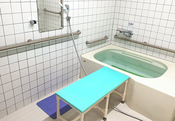 入浴は自立が難しい動作の一つです。お体の状態にあわせて、複数のタイプの浴室を用意しています。退院後の入浴方法について、作業療法士が看護師・介護士と連携して、実際の入浴動作を評価します。 洗体や清拭、浴槽移乗動作の練習を行います。能力に合わせて、段階的に使用する浴室や介助方法を検討し、自立を目指します。